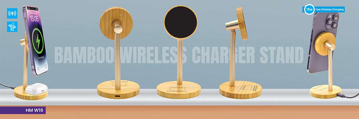 HM W16 BAMBOO WIRELESS CHARGER STAND LIGHT LOGO